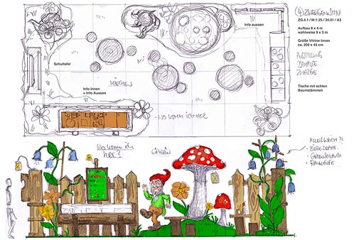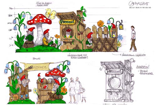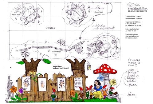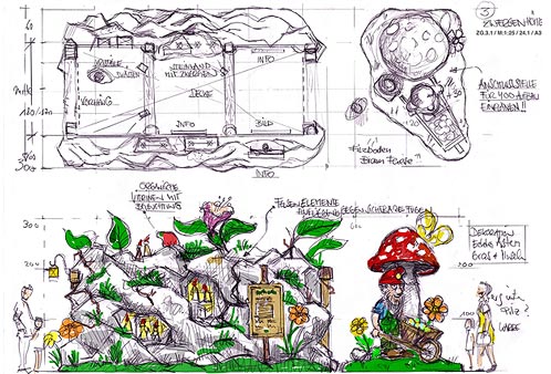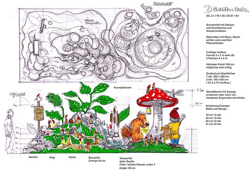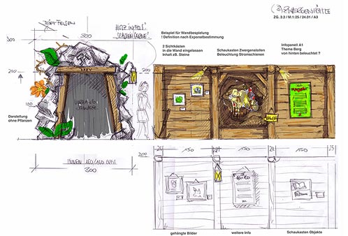 Bauzeichnungen für die Ausstellung „Im Land der Zwerge“
