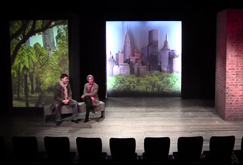 ... Unübersehbar auch die Topographie des Geschehens: Bühnenbildner Johannes Fischer zaubert mit einfachen bildnerischen Mitteln New York herbei; Skyline und Central-Park sind ebenso spektakulär wie einfach dargestellt. (WZ 04.05.15)