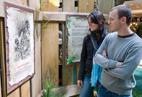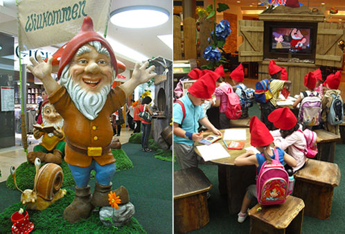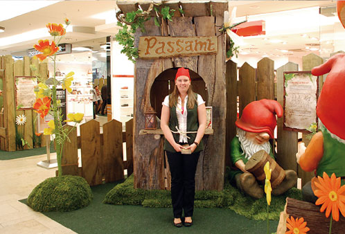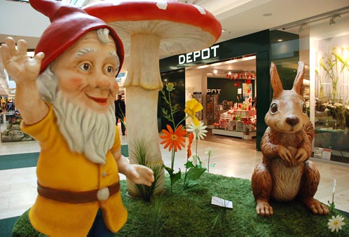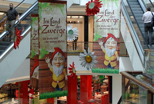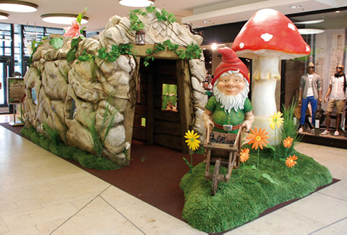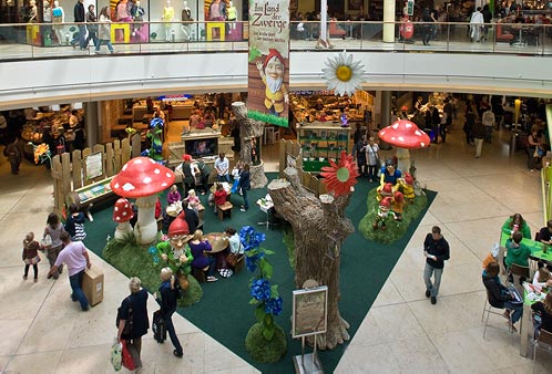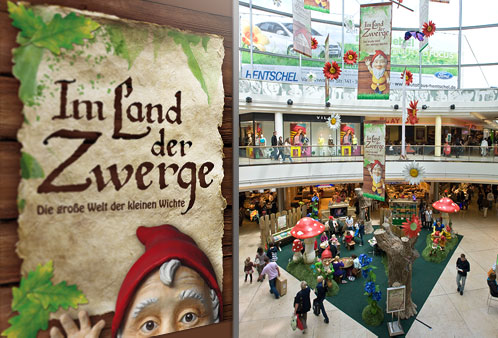 Idee: Das Einkaufzentrum wird zum Zwergenland mit überdimensionalen Fliegenpilzen, Tieren, Blumen und begehbaren Höhlen. Die Besucher erleben diese Welt selbst aus der Sicht von Zwergen.