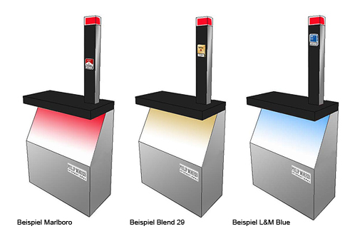 Idee: Der Kunde legt seine alte Zigarettenpackung in das Fach und erhält dafür im Fach eine neue von Philipp Morris.